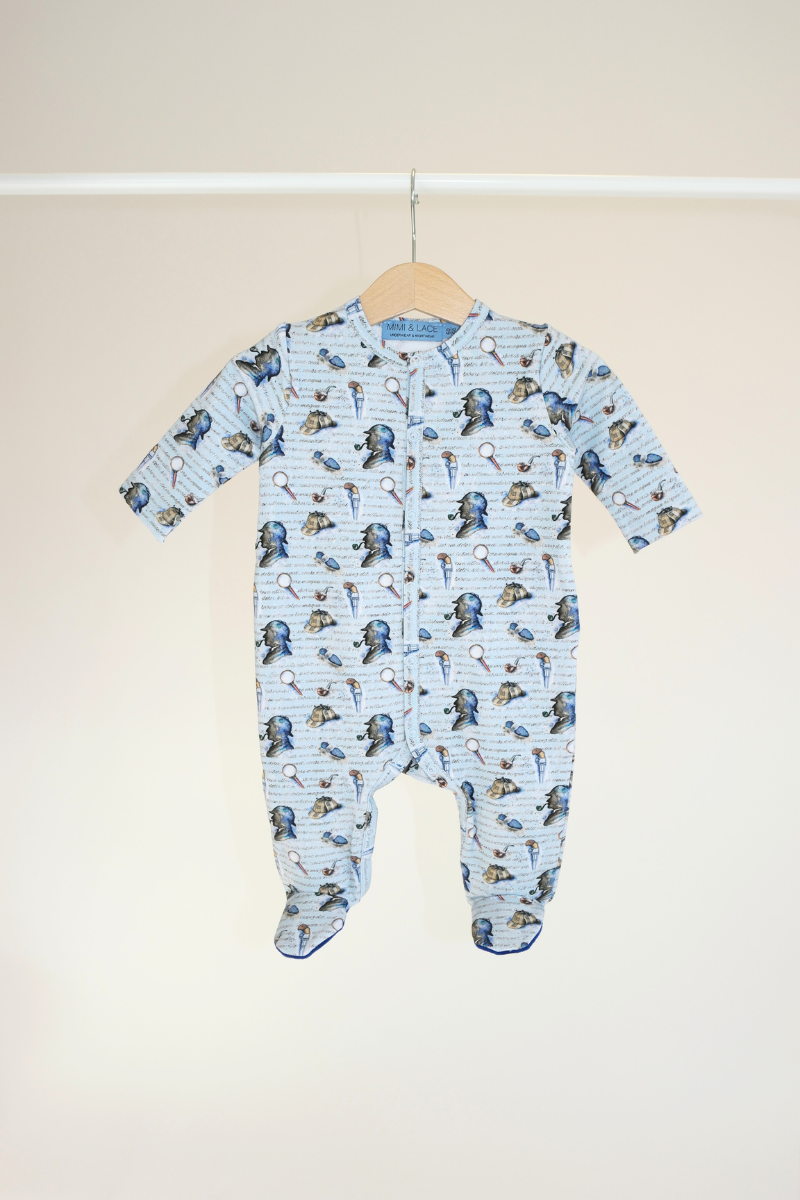Houd je kleintje warm en stijlvol deze winter met ons schattige baby boxpakje voor jongetjes. Het pakje is gemaakt van een iets dikkere, zachte kwaliteit perfect voor de koudere maanden. Het boxpakje is voorzien van een leuke detective print en heeft zachte verloure voetjes, zodat je baby het extra comfortabel heeft, van top tot teen. Voor een complete look kun je het pakje ook combineren met het bijpassende baby mutsje.
